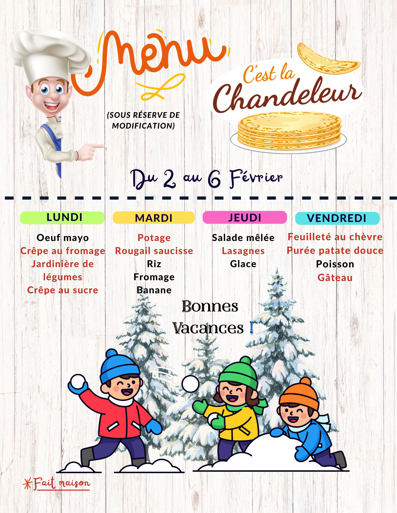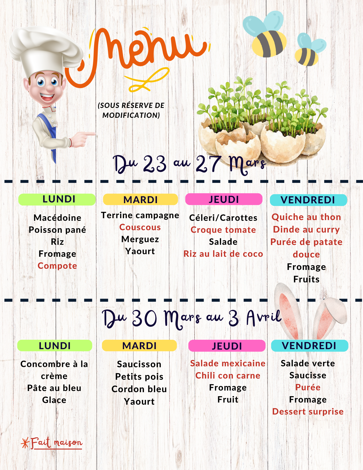 La Cantine et ses menus pour les enfants