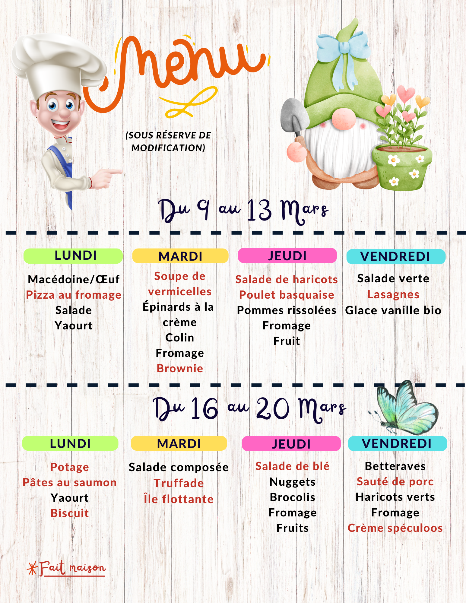 La Cantine et ses menus pour les enfants